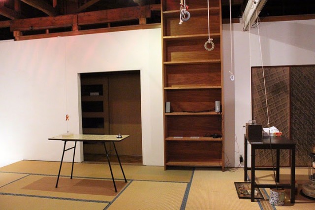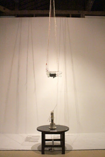 日常的な物質に電磁石やモーターなどを組み合わせた自作デバイスを国内外で発表する堀尾寛太。室内にぶら下がる紐を引っ張ると、張り巡らされたロープが思わぬ仕掛けを引き起こす。2011年1月に20202で行われた個展の発展版とも言える内容。