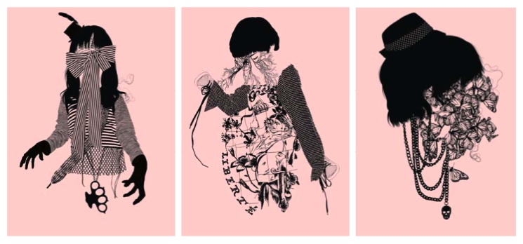 それはまるで、永遠んに進化し続けるカタログや多目的なノートに、決して消えることのないシルエットが書き込まれているかのよう。Jules Julienはファッション雑誌の中のモデルの写真を一旦ばらばらのパーツに解体し、そして彼なりの視点で全く違った姿や形へと変化させて作品にしていく。そこでは、人と洋服をつなぐ体のパーツを通して、人間の内面と外見、個人と集合体の一部、不断に変容し続けるファッションムーブメントと、儚い人生、これらの間に存在する[つなぎめ]、つまり個性とは何かを探求している。