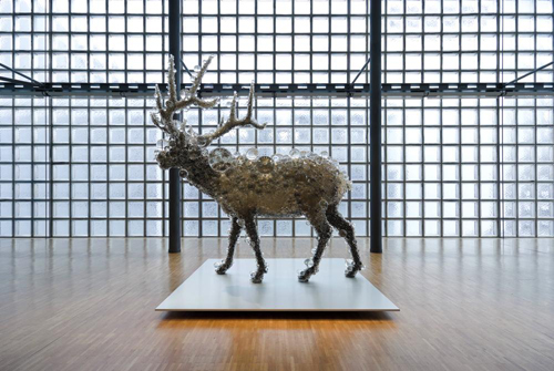 どの作品にも共通しているのは、思わず手を触れたくなるような迫り来る素材感と、その完成された造形美。そして名和の作品を語るにあたって、重要な概念は「表皮」と「セル(細胞)」。「PixCell」 シリーズでは、動物の剥製、スニーカー、楽器、玩具、果物のレプリカといったオブジェクトの「表皮」をそれまでとは異なるフェーズ(様相)へと変容させる。