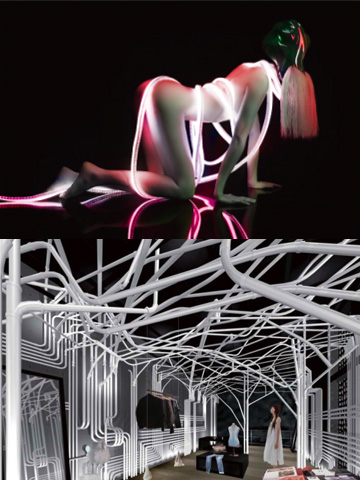 谷尻は、2008年のDESIGN TIDE TOKYOの会場構成、商業施設、アート展のインテリア等を手がけ、近年その活動は海外でのプロジェクトにも広がっている、気鋭の建築家である。今回の展示では、ディスプレイも兼ねたストア空間でのインスタレーションという新たなジャンルに挑戦し、アート的な面での才能を遺憾なく発揮している。