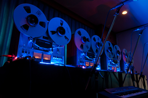 『Open Reel Ensemble』は、マイクからリアルタイムに録音された音が、3台のレコーダー同士の同期やリールの回転速度の変化といった、機器の動きによって再構成され、アナログ独特の音色を持ったサウンドを奏でるライブ・パフォーマンス作品である。オープンリールのアナログな特性と、昨今のデジタル技術の可能性における接点を見いだし、それらを見事に昇華させた作品と言える。