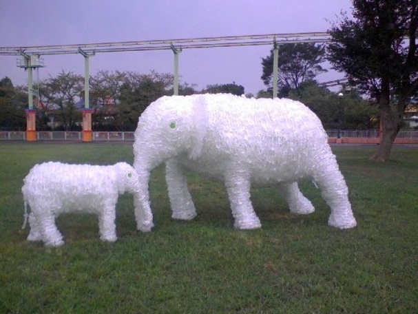 "しぼれるペットボトル"のミネラルウォーター「い・ろ・は・す」(日本コカ・コーラ株式会社)の空ボトルを使用して実物大の絶滅危惧種の動物たちを作り上げたアート作品が、ゲリラ的に東京の街なかや環境イベントに展示されている。