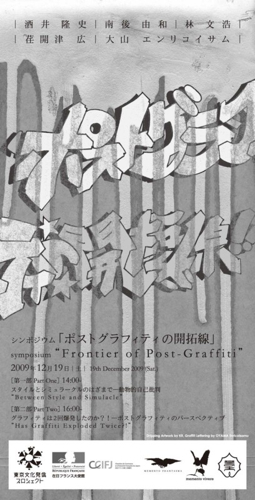 二部構成で予定されている同シンポジウム、第一部では社会学や文化批評の現場でこれまでにグラフィティへの問題意識を提示したことのある論客、酒井隆史、南後由和をゲストに迎え、グラフィティにおいて重要なキーワードである「スタイル」という概念と、ポップカルチャーとしてのグラフィティが持つ「シミュラークルな様態」を結びつけ議論を展開する。