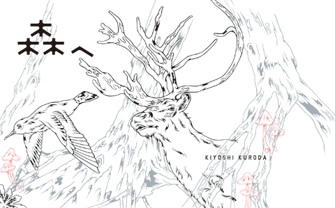 今回のビジュアルブックのテーマは黒田がかねてから希望していた「森」。森に生きる動植物の静寂と躍動を美しい線画と立体造形で表現した新しいビジュアル・ストーリー・ブックだ。