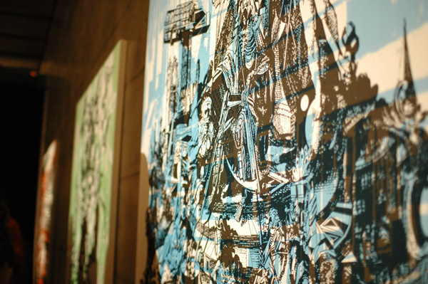 今回の展示では、OHPとキャンパスを駆使したインスタレーション作品、映像作品や立体作品などの新作を展示しており、贅沢な空間を演出している。