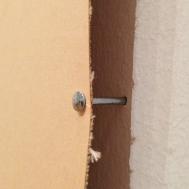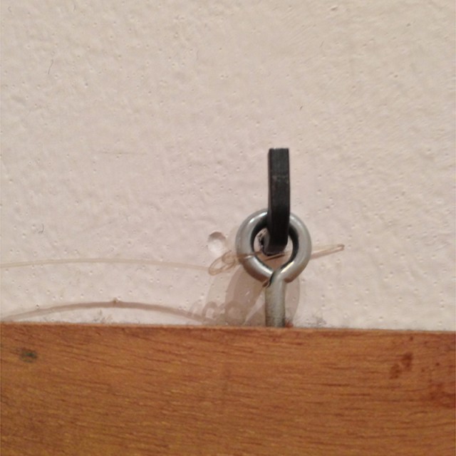 これも展示が難しそうな作品。ねじ込みのヒル釘2つで吊るしてあります。
