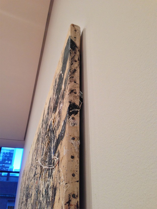 ジャクソンポロックの大作はかなりごつい金具でしっかりと止められています。作品の荒々しい感じから一点して展示用の金具の木訥さに思わずグッときます。