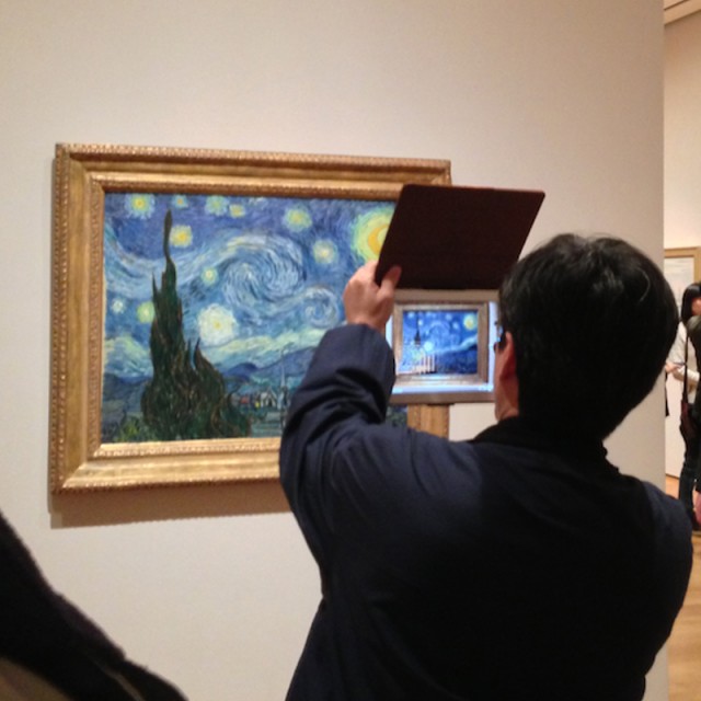 ゴッホの名作「星月夜(1889年)」が、123年の時を超えて今まさに2012年を代表する新しい額縁(iPad)におさめられる瞬間です。