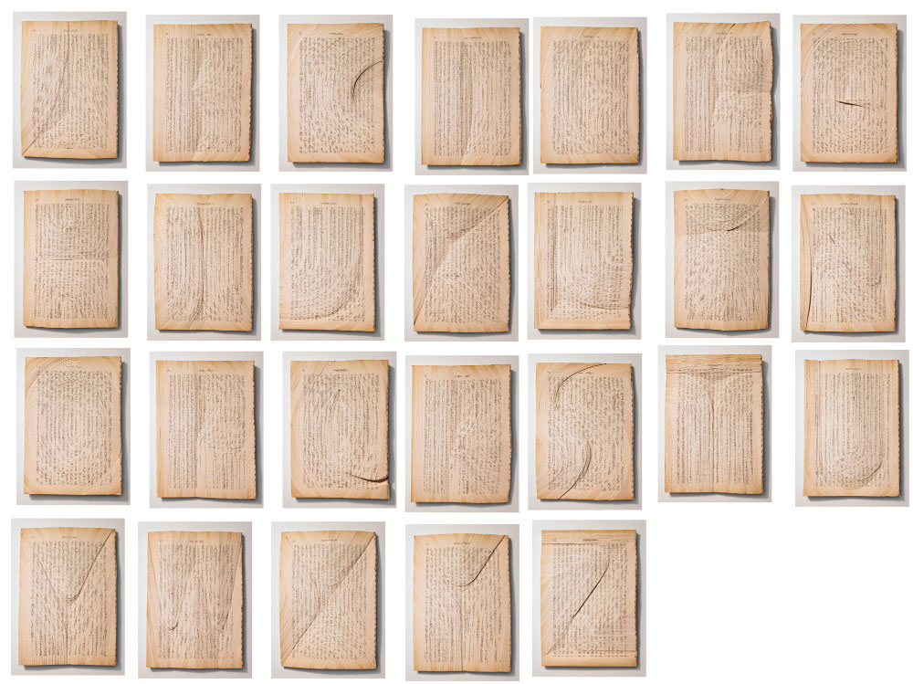 本を切り開き、文字としての意味を昇華、再構築の作業をしていたところから、作品に一つのメッセージとしての意味を付加する事に、疑問が生まれました。