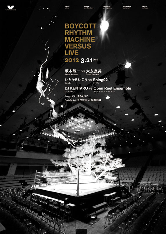 2006年には「音楽による異種格闘技戦」というコンセプトのもと、そのジャズサイドのキーパーソンと若手異ジャンルのトップミュージシャンとが、”当日初顔合わせとなる両者に即興で、1日で作品をつくってもらう”というテーマによるドキュメント作品『BOYCOTT RHYTHM MACHINE II VERSUS』をリリース。これまで2009年、2010年にライブ・ヴァーションとして開催され、昨年12月には夜の国立科学博物館を舞台に、熱き3大決戦が行われた。