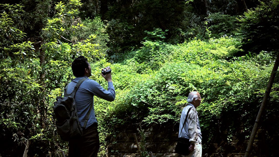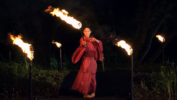 生活に溶け込んだ地元の祭りや風習、文化。当然のように受け入れ、自身の体に染み込んだそれらは、一体どこからきたものなのだろうか。こうした疑問から時代を遡り、同地での文化形成の記憶を紐解いていくなかで、地元の民俗学研究者・村西博二との出会いが制作活動に大きな影響を与えた。地元の民俗学”研究者”である村西が語る物語は、鶴来という地域を超えて日本の神話、渡来人のルーツなど数千年の歴史に及ぶスケールを持つ魅力的な”フィクション”だった。