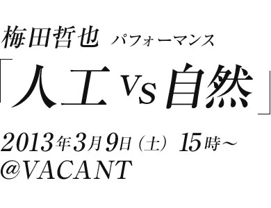 アーティスト・梅田哲也の単独パフォーマンス公演「人工vs自然」が3月9日、原宿 VACANTにて開催される。