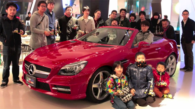 ミニ四駆と二重振子で、SENSELESS DRAWING BOTの小型プロトタイプと同様のものを実際に制作し、その先端にLEDをつけて、カメラで軌跡を記録。そのデータをGML(こちらの記事参照)形式で書き出し、それをプロジェクションする、という充実した内容になったよう。ビデオもいい感じ!