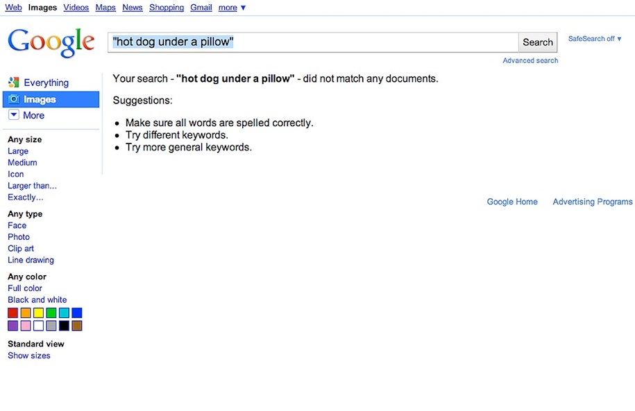 そして彼が作成し、アップした画像が以下。”hot dog under a pillow”がインターネットに追加されました。