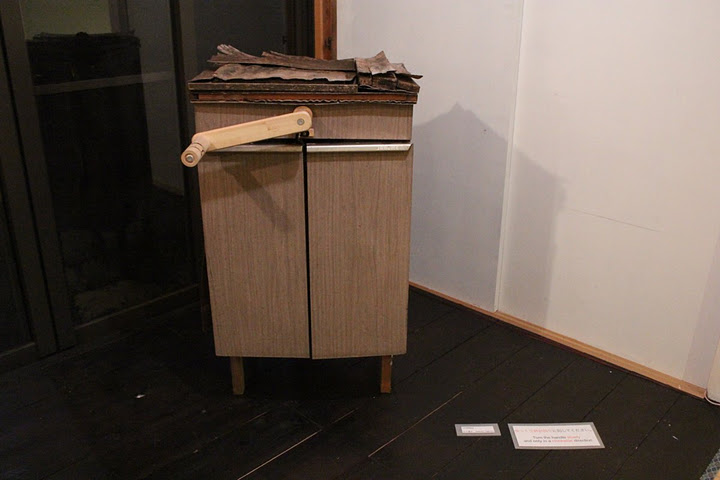 自走するスピーカーのパフォーマンスユニット「Motallica」や、東京都墨田区の廃工場を改装したスペース「八広HIGHTI」のオーガナイズなどでも知られるアーティスト、矢代諭史。一見空っぽの箱だが、ハンドルを回すと鑑賞者は奇妙な感覚を味わうことになる。