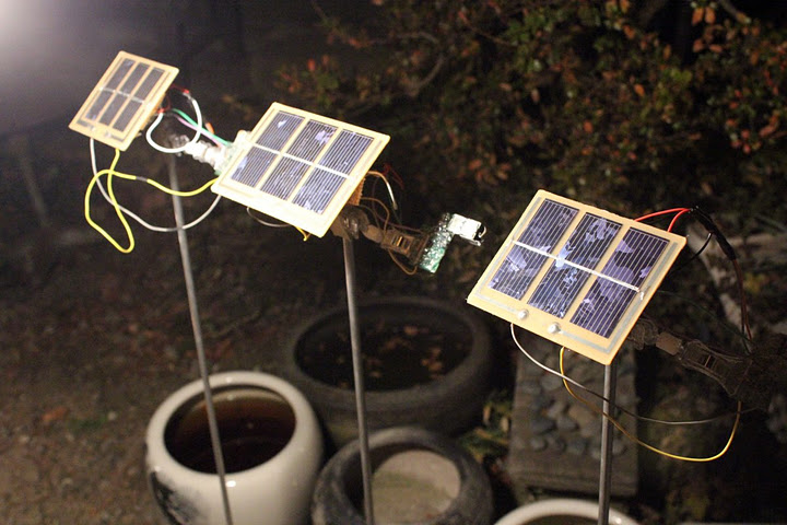 電子機器やジャンク・身近な素材を組み合わせて制作した楽器によるライヴ・パフォーマンス、インスタレーション作品を手掛けるアーティスト、大城真。太陽電池と使い捨てカメラのフラッシュを組み合わせた作品。