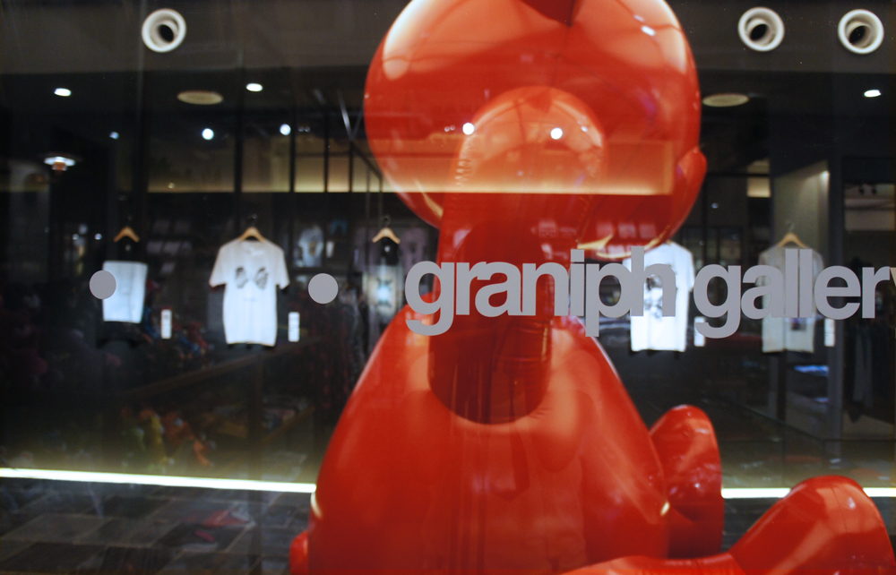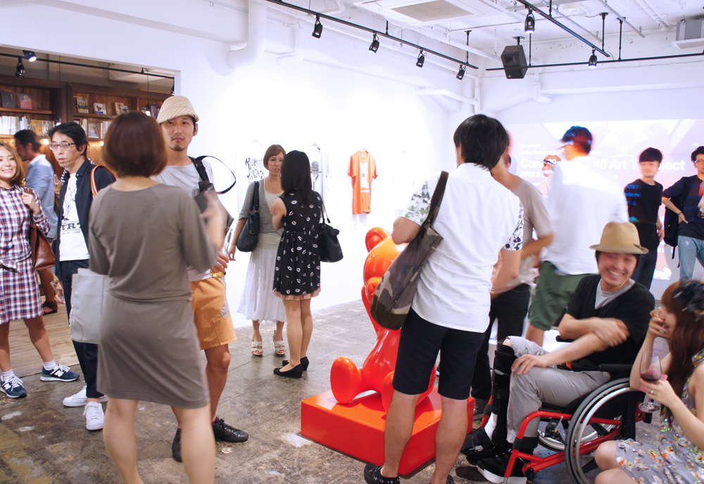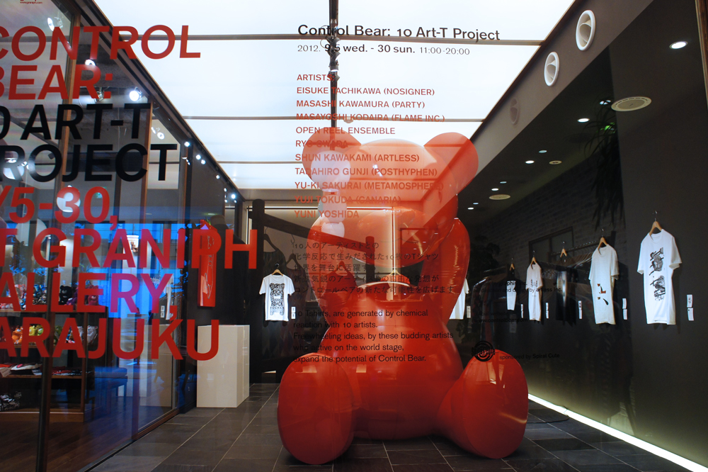 メイン会場となったのは graniph harajuku gallery。会場にはプロジェクトの第一弾で制作されたバルーンアートと10枚のTシャツが展示された。無垢に頭を持ち上げている高さ3mの CONTROL BEAR は迫力ものだ。