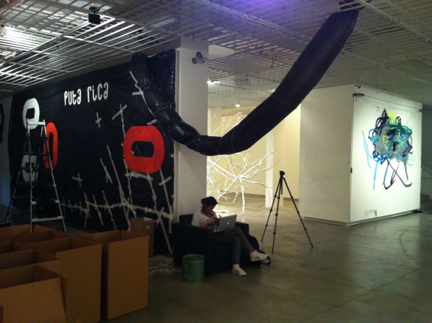 前日にだいたい描き上げた壁にfupeteがなんか描きたいということで自由に描いてもらった。