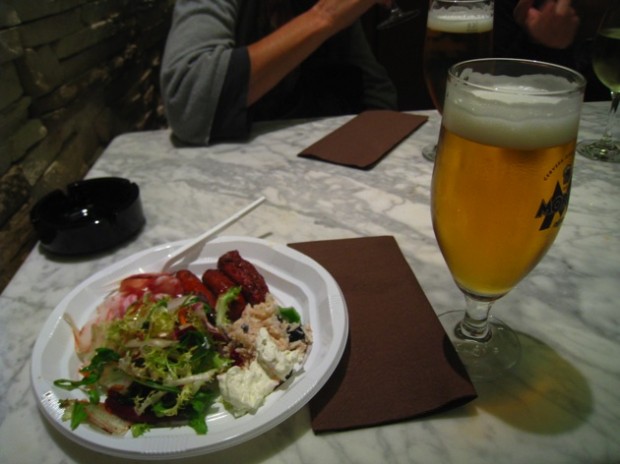 とりあずビールと、金曜だけビュッフェ的な感じで食い物タダ。