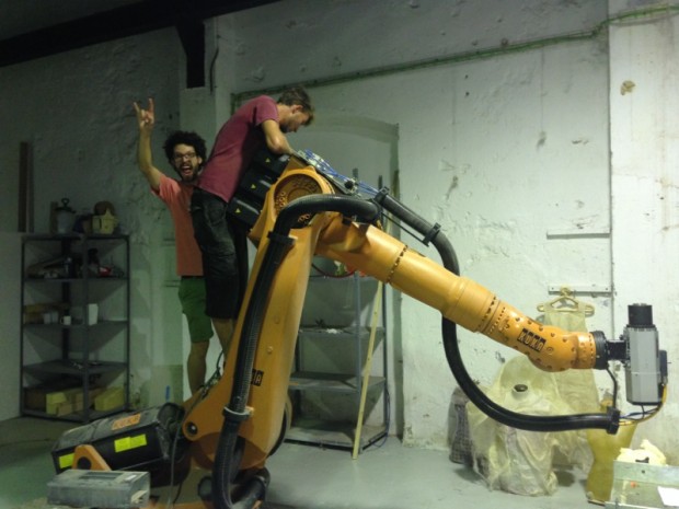 IAAC及びFabLab BarcelonaはHANGARから歩いて15分ぐらいの割りと近いところにあって、HANGAR同様、工場の跡地をリノベーションした建物が校舎になってて、広大なスペースには見たことないような機種の3Dプリンタやレーザーカッター、あとロボットアームまで、ないもんないんじゃないかってぐらいなんでもいろいろ揃ってた。