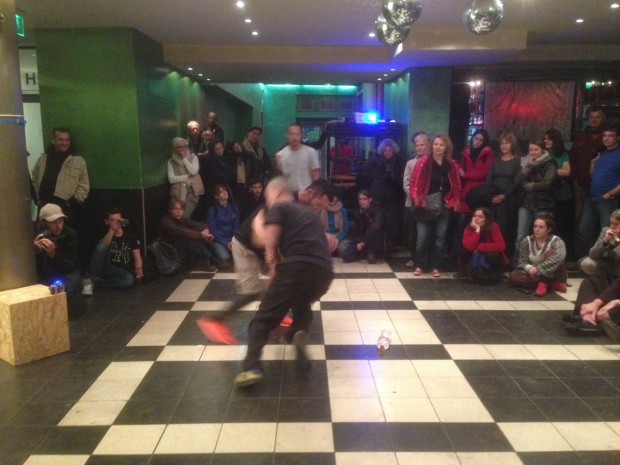 各地に中、小規模の都市が点在するドイツ、その中でもフライブルグは割と小規模の部類に入る都市(たぶん)。ZKMがあるカールスルーエと同じぐらいの規模みたいだけど、カールスルーエよりは若干都会的な印象。仕事引退して移り住んでくるおっちゃんおばちゃんと、あと大学があって若者が多いらしい。タグとかボムも多い。今回呼ばれたのはそんな町で開催されてるインターナショナルダンスフェスで、世界中からダンサー呼んで、ここ数年で流行ってるアーバンガーデニングも取り入れてて、シアターの前とか、建物のバルコニー、屋上で野菜育てたり養蜂したりな感じのフェス。