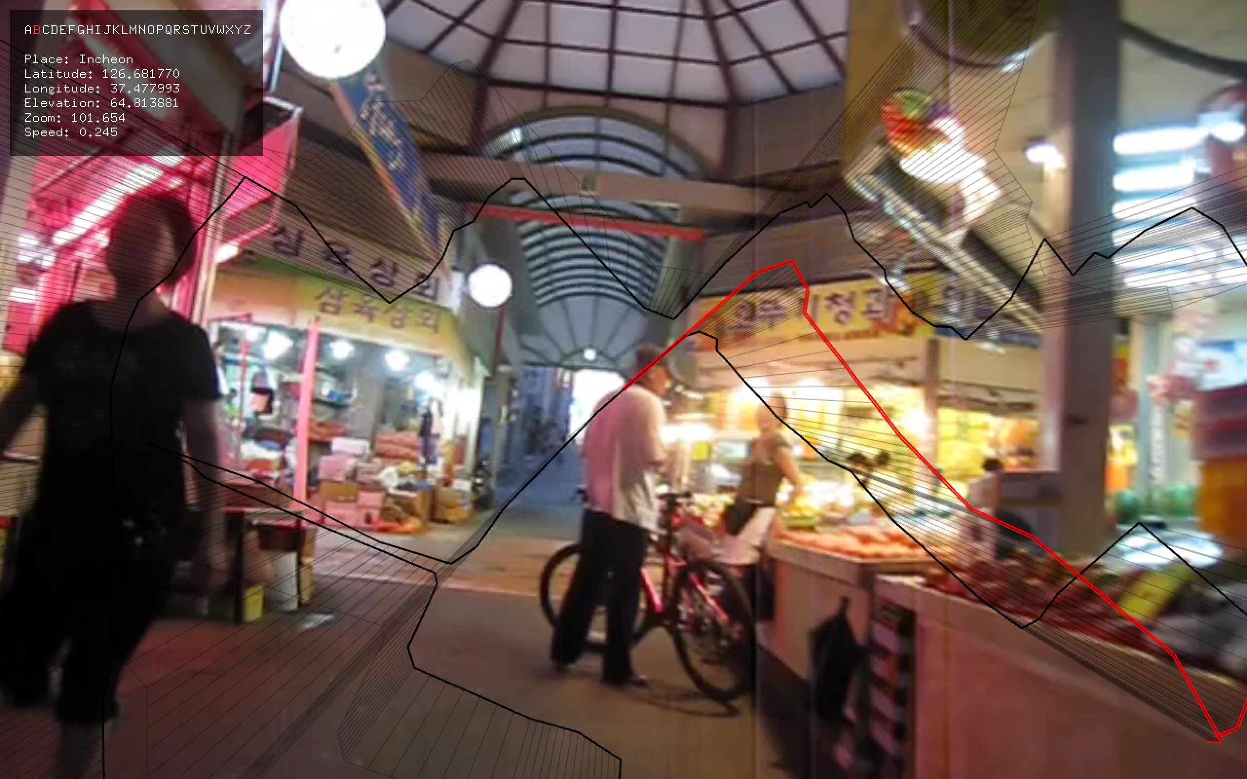(間引きして1/3ぐらいの解像度にしてたGPSデータを、openFrameworksに移植したことによってそのままのデータの密度で見せれるようになった上に、一つの画面で動画も表示できるようになった。)