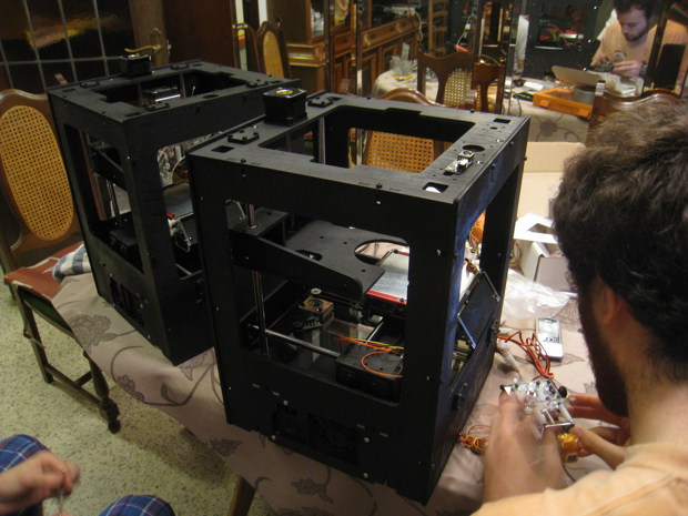 Maker bot という安価な3Dプリンタを5台量産中でした。